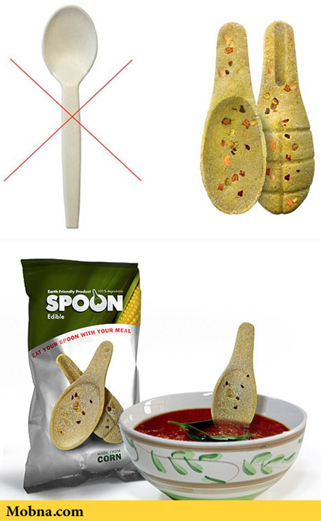به تازگی قاشقهایی ساخته شدهاند که طعم ذرت میدهند و به عنوان مثال، در روزهای سرد زمستان سوپی که در حال خوردن آن هستید را خوشمزهتر میکنند تا در پایان بتوانید قاشق را هم بخورید. این قاشقهای سازگار با محیط زیست در شرکتی به نام «ترینگلتری» ساخته شدهاند و مواد تشکیل دهنده آنها ۱۰۰ درصد طبیعی هستند. ماده اصلی ساخت این قاشق را ذرت تشکیل میدهد و میتوان از آن در عموم رستورانها برای سرو کردن سوپ، سالاد، برنج و … استفاده کرد. این شرکت میکوشد مدل ارزان قاشقهای مذکور را برای استفاده خانگی هم روانه بازار کند.