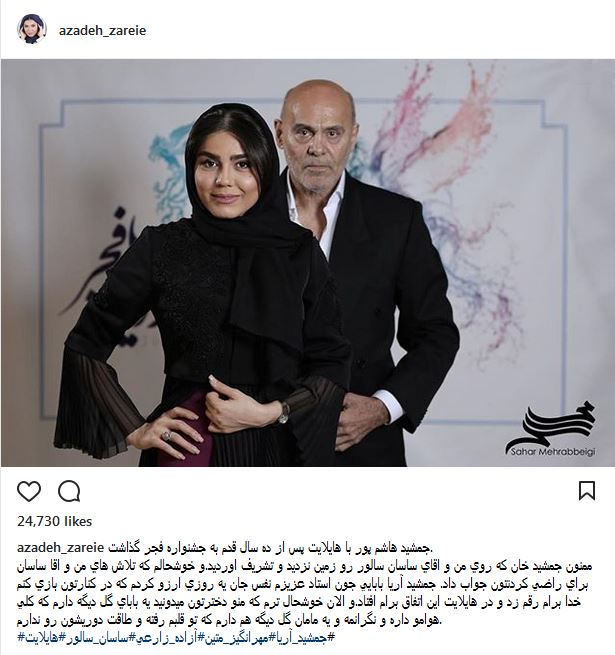 تیپ و ژست جالب آزاده زارعی و جمشید هاشم پور در جشنواره فیلم فجر (عکس)