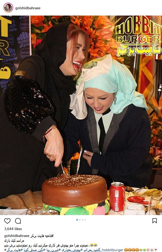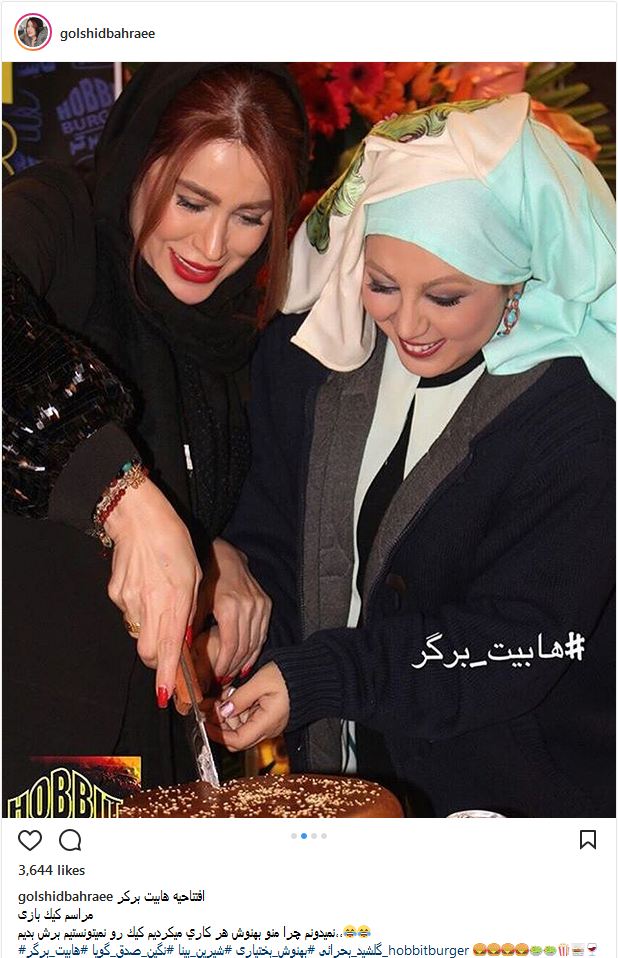 کیک بازی بهنوش بختیاری و گلشید بحرایی در یک مراسم افتتاحیه (عکس)