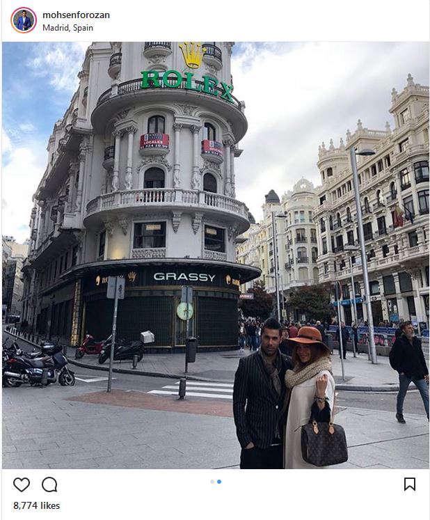 پوشش و ظاهر متفاوت محسن فروزان و همسرش در مادرید (عکس)