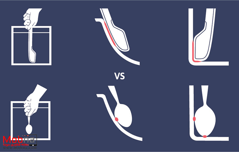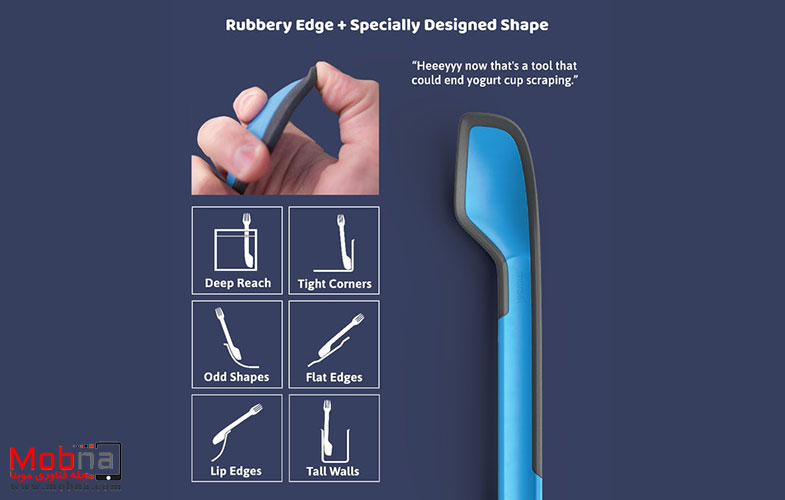اما شاید نکته قابل توجهی که این ابزار چندکاره دارد، انتهای پلاستیکی آن است که از بخش بیرونی قاشق تا دسته در یک طرف آن قرار میگیرد و توانایی خاصی برای کامل تمیزکردن مواد غذایی همچون ماست را از ظرف به شما خواهد داد. این وسیله طوری طراحی شده تا شما دسترسی کامل به داخل قابلمهها و لبههای آنها داشته باشید.