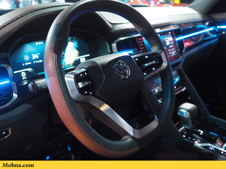 در قسمت داخلی طراحی ویژه مدلهای جدید خودروهای فولکس واگن دیده میشود. این محصول مانند «هوندا ریجلاین» یک شاسیبلند لوکس محسوب می شود و البته نسبت به رقیب ژاپنی امکانات پیشرفتهتری دارد. نوار بلند چراغ LED در سرتاسر کابین جلو امتداد یافته است که رنگ آن بین آبی و زرد تغییر میکند و این رنگ به حالت ویژه رانندگی بستگی دارد. فرمان خودرو از جنس چرم است و جهت و زاویه آن متناسب با قد راننده تغییر میکند. کلیدهای کنترلی روی فرمان فلزی هستند و در مجموع این طراحی سواری با «اطلس تانوآک» را آسان میکند.