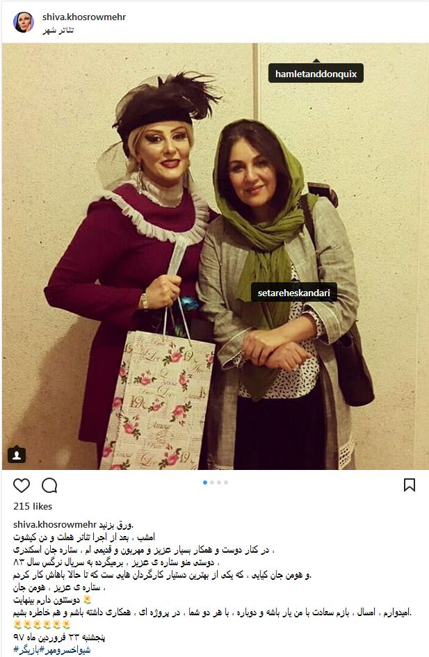 عکس یادگاری ستاره اسکندری به همراه شیوا خسرومهر در تئاتر شهر (عکس)
