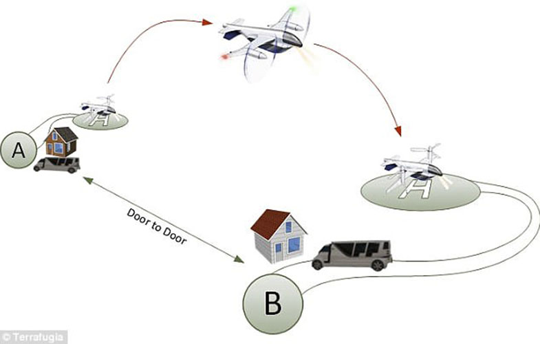 این فناوری ، یک خودرو قانونی برای جاده به همراه یک وسیله نقلیه پرنده است که مسافران را از خانه به یک بالگردنشین(Helipad) میرساند تا آنها را از آنجا به سوی مقصد ببرد.