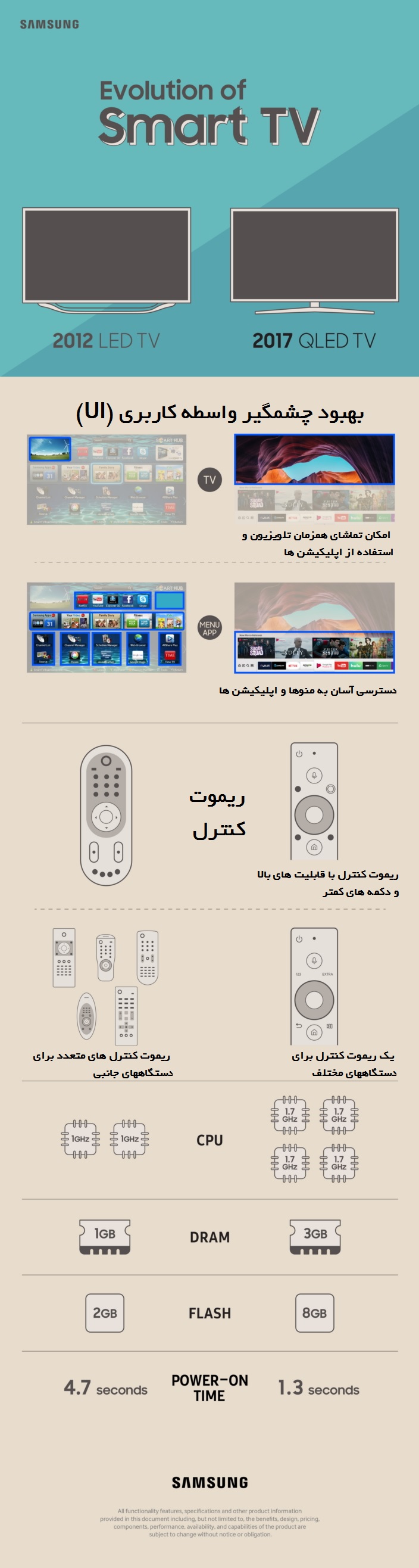در ادامه روند تحولات محصولات سامسونگ از تلویزیونهای هوشمند معمولی تا نسخههای نهایی سری QLED را بصورت یک اینفوگرافی به شما نشان دادهایم: