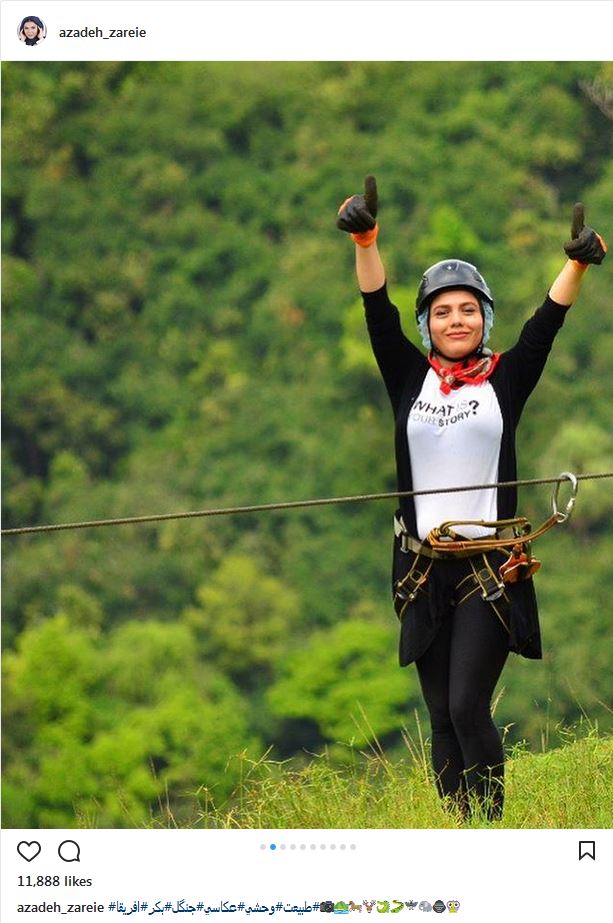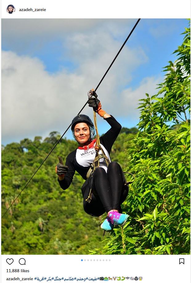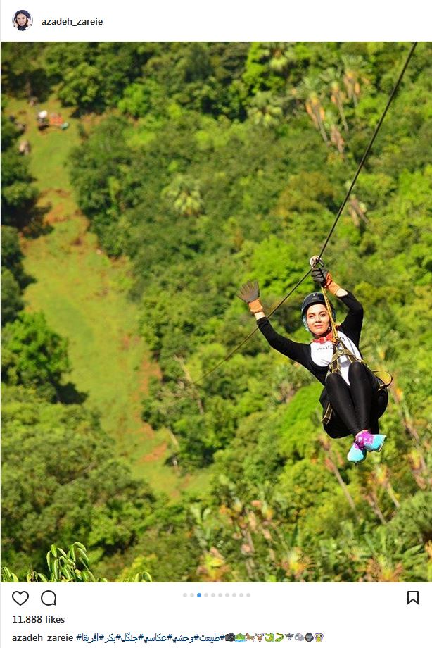 زیپ لاین سواری آزاده زارعی در طبیعت بکر آفریقا (عکس)