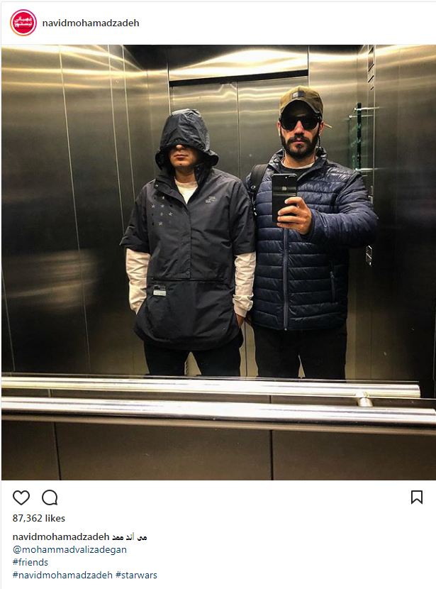 سلفی جالب آینه‌ای نوید محمدزاده و دوستش در آسانسور (عکس)