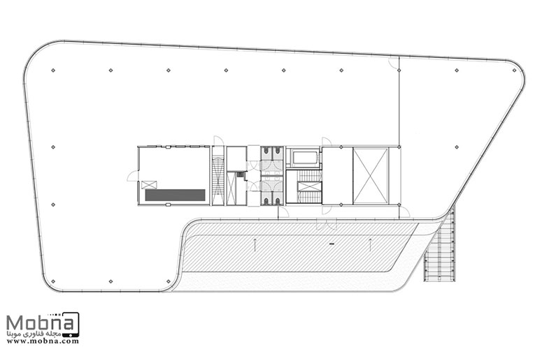طبقه دوم ساختمان با مهارت بالایی طراحی شده است. طبقه فوقانی با نقشه منحنی شکل خود فضایی کافی را به منظور ایجاد یک باغ کوچک فراهم کرده است. جذابیت ورودی این طبقه با حضور باغچه ای زیبا، دو چندان خواهد شد. جالب است بدانید که الکتریسیته مورد نیاز برای کل ساختمان توسط پنل های خورشیدی تامین می شود.