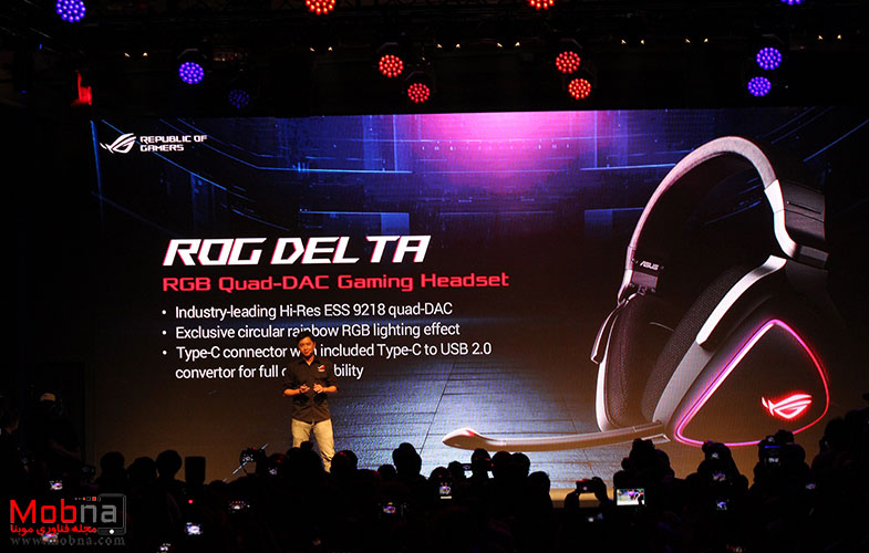 سپس Derek Yu مدیر بازاریابی ROG به روی صحنه آمد و از جدید ترین هدست گیمینگ ایسوس با نام ROG Delta رونمایی کرد: