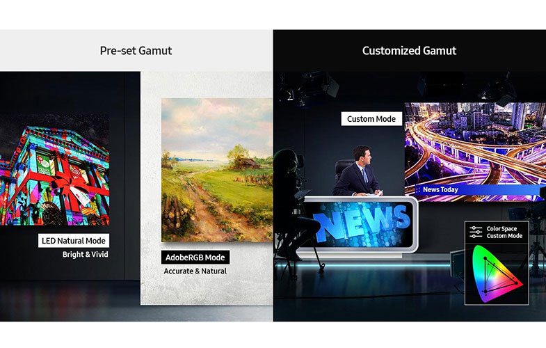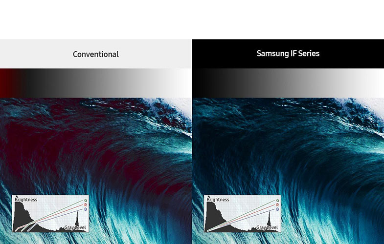 محتوای تبلیغاتی برای اینکه تاثیر زیادی داشته باشد و بتواند در ذهن بینندگان نفوذ کند میبایست با همان شکل و رنگی که طراحی شده به نمایش دربیاید. نمایش دقیق رنگها چالش بزرگی برای برخی از نمایشگرهای حرفهای است. نمایشگر مدل IF020H سامسونگ به کمک کالیبراسیون پیشرفته و امکانات شخصیسازی گسترده، این امکان را به صاحبش میدهد تا به طور دلخواه و در دامنه گستردهای از رنگها محتوای خود را به تصویر بکشد. در طی فرآیند کالیبراسیون این نمایشگر تمامی ساب پیکسلها برای نمایش یکنواخت رنگها و میزان یکسان روشنایی محتوا در تمامی قسمتها تنظیم میشود.