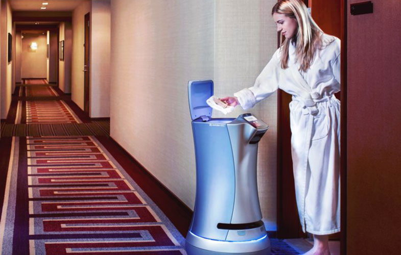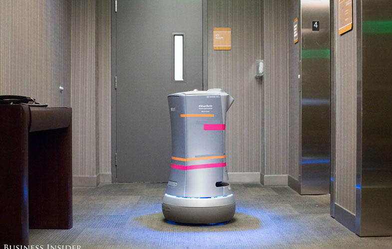 هتل آمریکایی به تازگی ۳ ربات “مهماندار” را به خدمت گرفته است که به مهمانان خدمات ارائه می‌دهند. این ربات بنفش رنگ ۱۲۱ سانتی‌متر قد دارد و با استفاده از چرخ‌های خود در سراسر هتل می‌چرخد. این ربات صفحه نمایشی دارد که با ورود مهمانان به هتل، به آن‌ها خوشامدگویی می‌کند و از آن‌ها استقبال می‌کند.