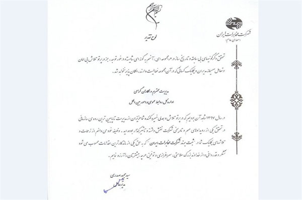 قدردانی مهندس صدری از اداره کل روابط عمومی به دلیل ثبت برند مخابرات