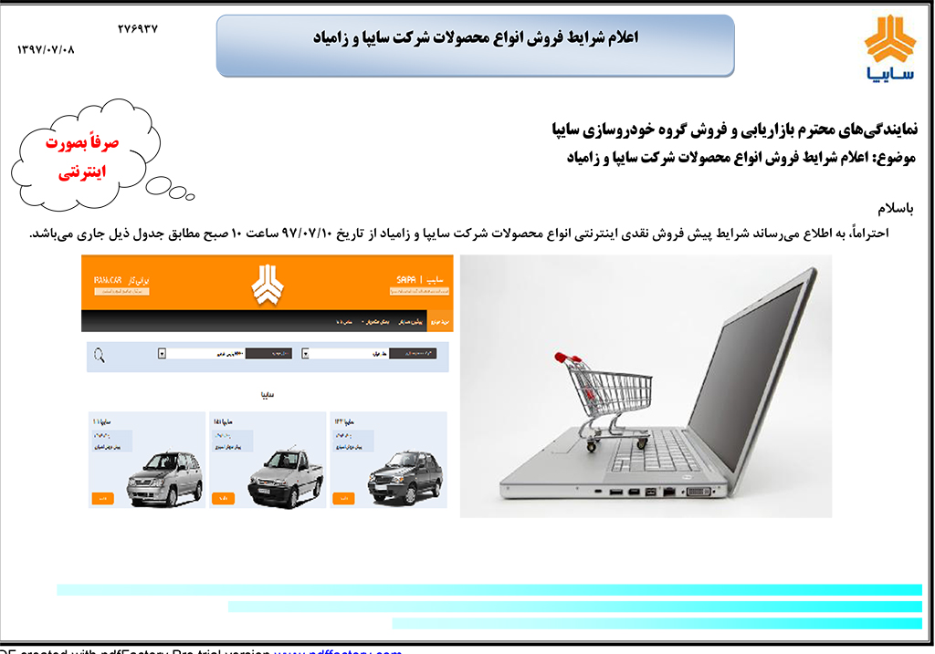 آغاز پیش فروش اینترنتی محصولات گروه خودرو سازی سایپا