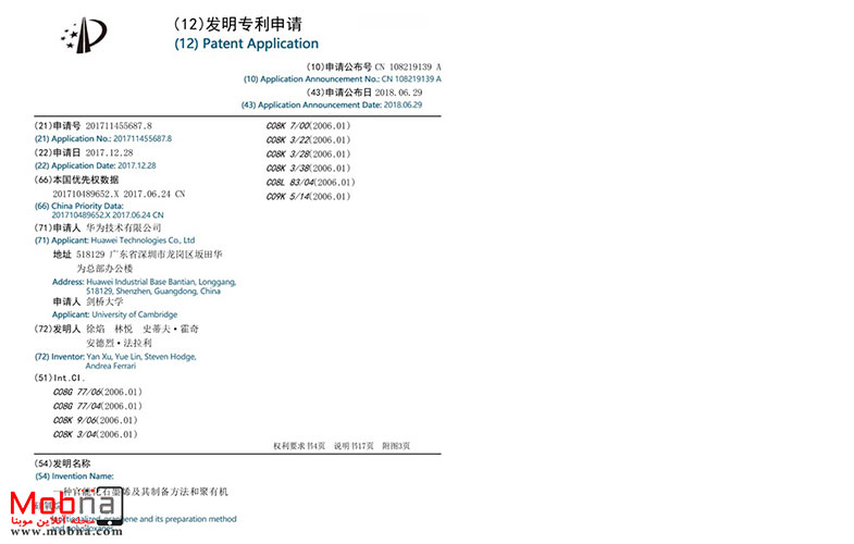 براساس سند ثبت اختراع، شرکت هوآوی نوعی گرافین کاربردیشده و یک روش آمادهسازی پتنتشده را اختراع کرده است.