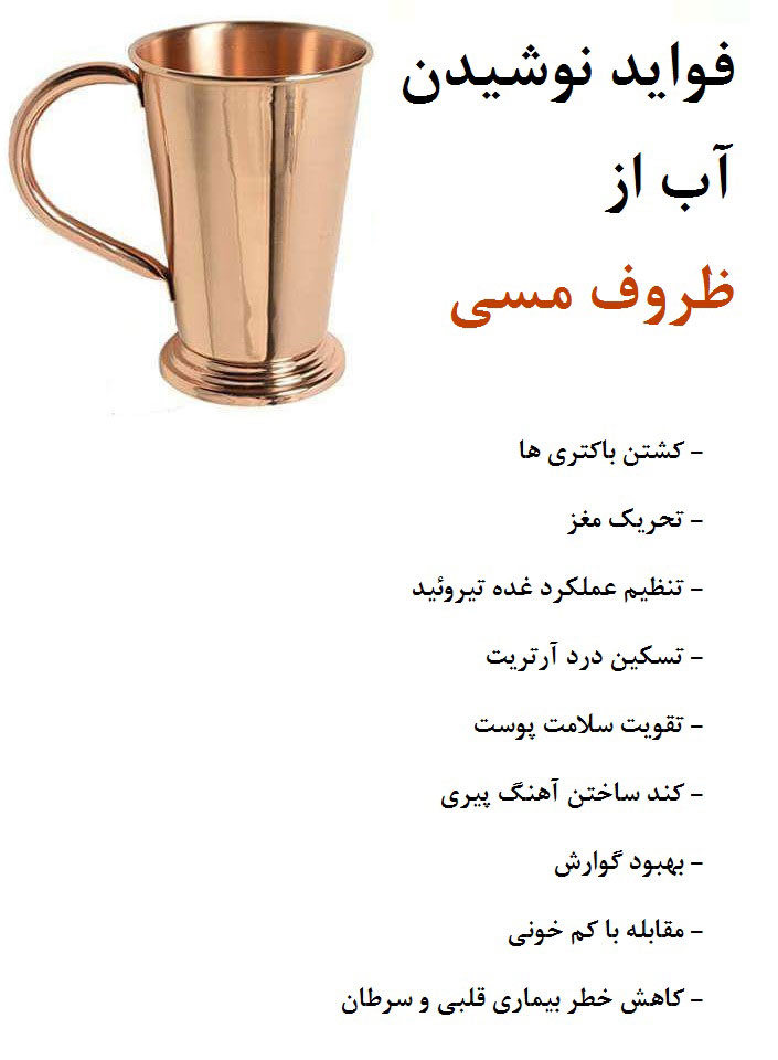 در ادامه با برخی فواید سلامت نوشیدن آب از ظروف مسی بیشتر آشنا می شویم.