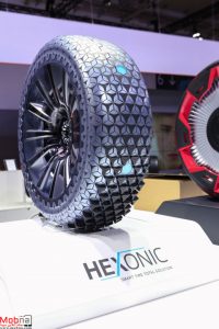 تایرHexonic برای خودروهای خودران ساخته شده و تمرکز اولیه آن روی راحتی سفر برای مسافرانی است که نمی خواهند احساس کنند در جاده یا سفر هستند. عاج تایر به مجموعه ای از ماژول های شش ضلعی تبدیل شده که به نظر می رسد از هم جدا می شوند تا کانال هایی جدید ایجاد کنند. در هرعاج شش ضلعی همچنین به حالت Y وجود دارد که سبب می شود تایر روی مسیرهای صاف حرکت کند و لیز نخورد. این تایر ۷ حسگر دارد و با کمک آنها اطلاعات جاده را می خواند، تحلیل می کند و واکنش نشان می دهد.