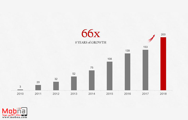موبنا – در هشت سال گذشته، ارائه‌ گوشی‌های هوشمند هوآوی از سه میلیون در سال 2010 به 200 میلیون در سال 2018 رسیده که رشد شصت و شش درصدی را نشان می‌دهد.