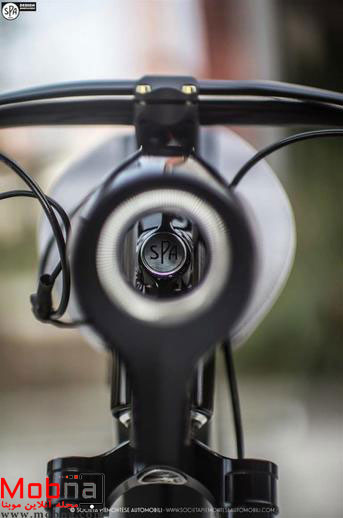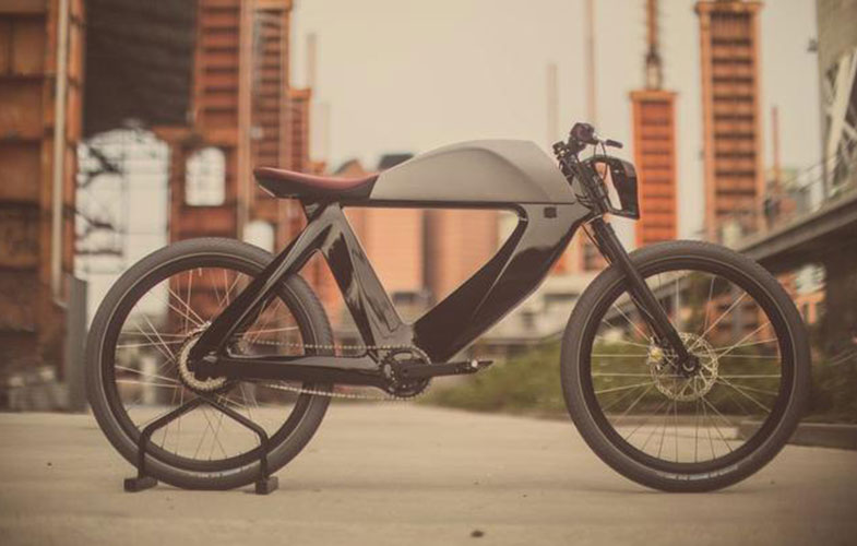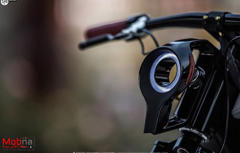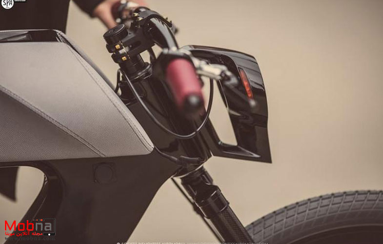 چراغ جلو این دوچرخه الکتریکی بیانی مدرن از چراغ های جلو خودرو اولیه است، در شرایطی که بدنه فیبر کربنی ساخت محصولی سبک وزن را ممکن کرده است.