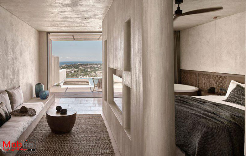 تلفیق این دریاچه دیدنی با درختان زیتون منطقه، چشم انداز بی نظیری را ایجاد کرده است. در ساخت هتل از مواد و مصالح طبیعی مانند چوب بلوط و بامبو استفاده شده است. بدین ترتیب با توجه به رعایت مدرنیته در طراحی هتل، مجموعه ای ساخته شده که از هر نظر با زیبایی های محیط اطراف مطابقت دارد و حسی لوکس از یک اقامت چند روزه در جزایر یونان را به مهمانان خود انتقال می دهد. ارتباط اصولی و ماهرانه فضاهای داخلی و خارجی با یکدیگر، این فرصت را فراهم آورده است تا بتوان از محیط طبیعی منطقه حداکثر لذت را برد.