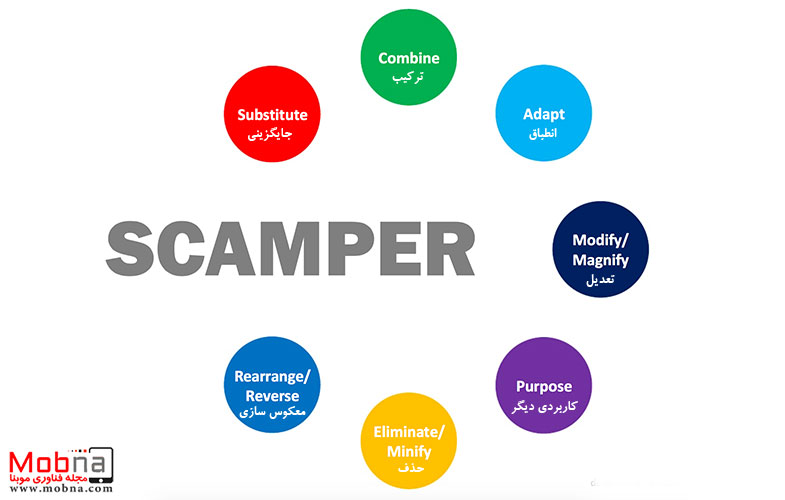 تکنیک اسکمپر نخستین بار توسط فردی به نام “Bob Eberle” باهدف ارائه سوالاتی که منتج به حل یک مشکل میشوند و یا قادر به تحریک خلاقیت ذهنی خواهند بود، معرفی شد. هرکدام از حروف این متد (SCAMPER) نشاندهنده تکنیکی خاص هستند. S معادل جایگزینی، C ترکیب، A انطباق، M تعدیل، P کاربردی دیگر، E حذف و R معکوس سازی است.