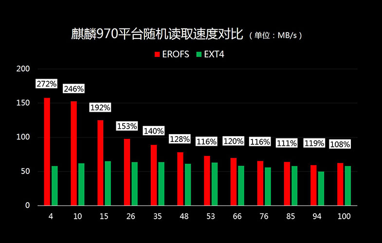 تا پیش از این، سیستم فایل P2FS استانداردی بود که بهبود عملکرد را در خواندن و نوشتن اطلاعات، در تعامل با حافظههای فلش به همراه داشت. این در حالی است که حالا با استفاده از EROFS (سیستم فایل فقط خواندنی با قابلیت توسعه یا همان Extendable Read-Only File System) به عنوان نسل جدید سیستم فایلها، این سرعت در مقایسه با سیستم فایل EXT4 تا ۲۰ درصد بهبود یافته است.