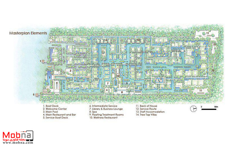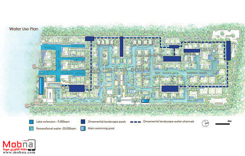 سیستم کانال های آبی در این مجموعه، ماهیگیری آسان در سایت های اختصاصی و همچنین ارتباط آبی میان نواحی مختلف را امکان پذیر خواهد ساخت. هدف اصلی پروژه نیز حفظ چشم انداز طبیعی منطقه و استفاده بهینه از آن جهت جلب نظر توریست ها بوده است.