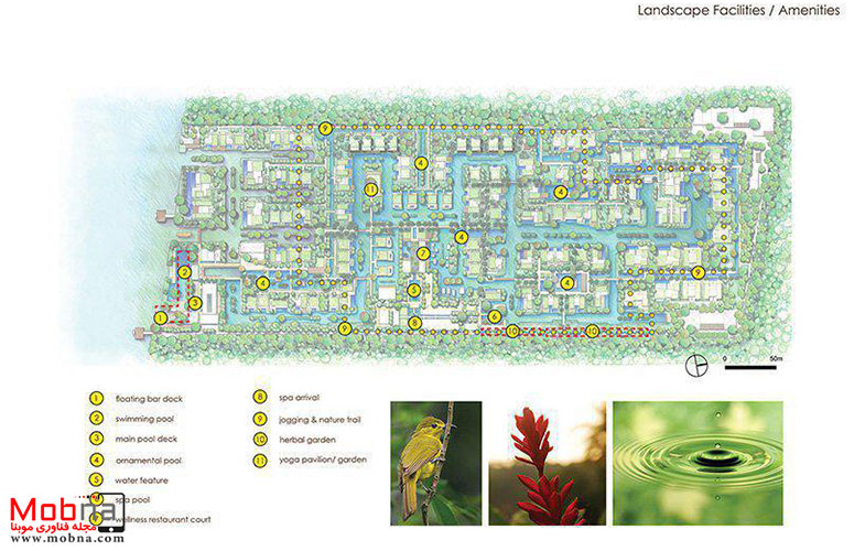 تیم معماری به منظور طراحی اقامتگاه تفریحی کرالا از یکی از نقاشی های معمار، گیاه شناس و نقاش برزیلی به نام روبرتو بورل مارکس الهام برداری کرده است. کل مجموعه به گونه ای در نظر گرفته شده است که قابلیت دسترسی به حمل و نقل آبی را داشته باشد. همین موضوع منتج به خلق یک پروژه مفهومی بسیار زیبا و کاملا متمایز شده است. با این طراحی کانال های آبی جدیدی ایجاد خواهند شد که جادوی اقامت در محیطی منحصر به فرد را برای مهمانان محقق می سازند.
