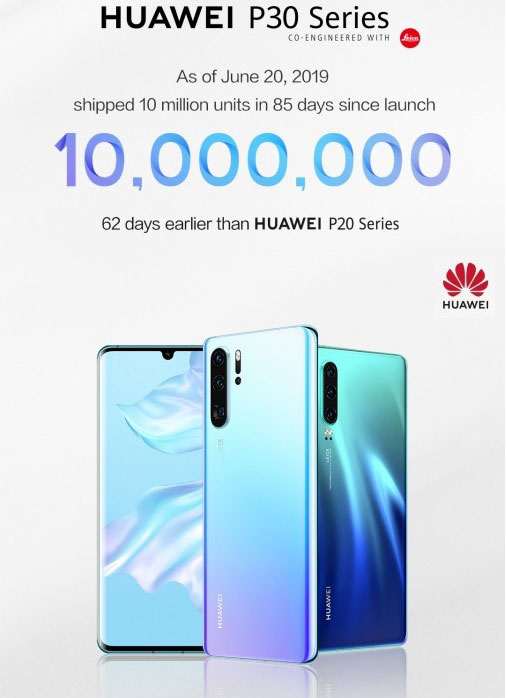 فروش ده میلیونی خانواده Huawei P30 در مدت 85 روز یک رکورد جدید برای هوآوی به شمار می‌آید، زیرا این بالاترین رکورد فروش گوشی‌های هوشمند برند هوآوی در مدت زمان 3 ماه است. این آمار نشان می‌دهد که تحریم‌های آمریکا تاثیر چندانی بر محبوبیت محصولات این شرکت در سطح جهانی نداشته  و تا انتهای ماه می سال جاری میلادی تعداد گوشی‌های عرضه شده توسط هوآوی در بازار جهانی به 100 میلیون دستگاه می‌رسد. سال گذشته هوآوی در مدت زمان بیشتری به رقم 100 میلیونی دست پیدا کرده بود.
