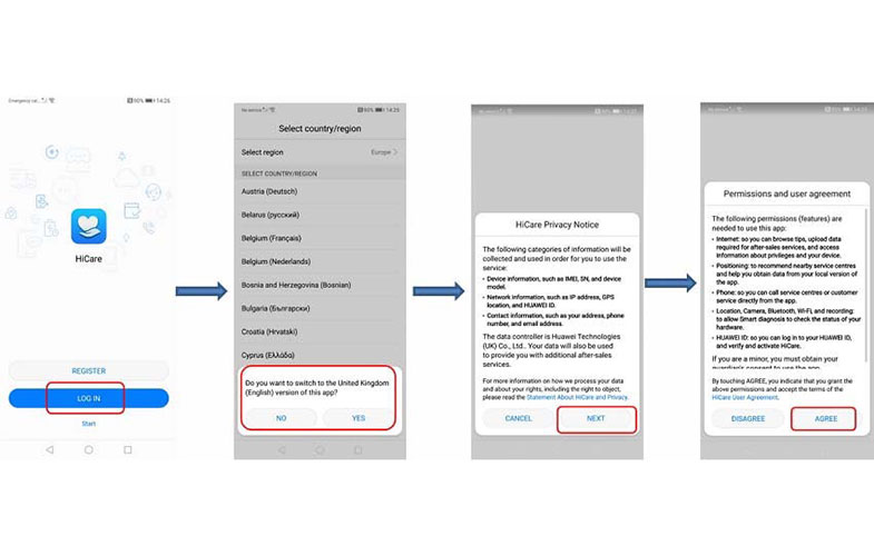- پس از نصب موفق، برنامه HiCare را اجرا کنید.