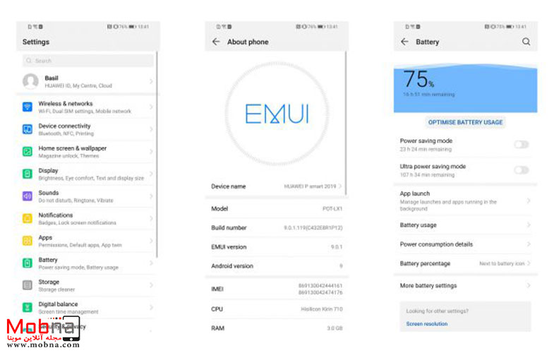 گوشی Huawei P Smart 2019 رابط کاربری EMUI 9 UI را براساس اندورید 9 پای اجرا می کند.