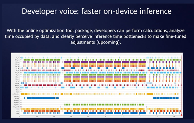 او در ادامه به جزئیات دقیق محاسبات قدرتمند ارائه شده توسط پردازشگر عصبی داوینچی، APIهای واقعیت افزوده و مدل های کوچکسازی اشاره کرد. او با اشار به به ابزار بهینهسازی الگوریتم و نحوه ترکیب این فناوریها با هدف بهبود مشکلات اساسی توسعه دهندگان، فعال ساختن اکوسیستم HiAI و رسیدن به مرحلههای بزرگتر برای توسعه دهندگان را در آینده نزدیک پیش بینی نمود.