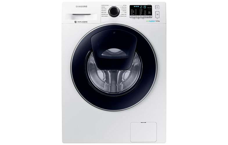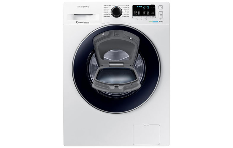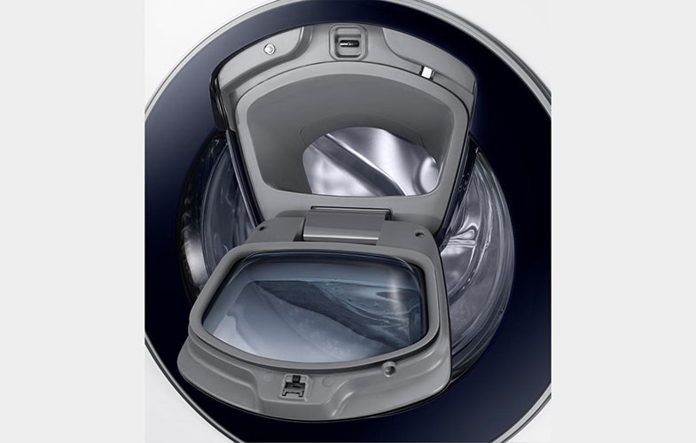اولین نکتهای که فروشندهها به آن اشاره میکردند قابلیت منحصربهفرد این سری از ماشینهای لباسشویی سامسونگ بود. قابلیت جدیدی که با نام ادواش شناخته میشود. ادواش یک در کوچک است که بالای درِ اصلی ماشین لباسشویی به شکل زیبایی طراحی و جاگذاری شده و این امکان را فراهم میکند تا در زمانهایی معین از چرخه شستشو، لباس های جامانده را به ماشین اضافه کنید. طراحی این در دوم به گونهایست که قطرهای از آب داخل دیگ به بیرون نمیریزد.