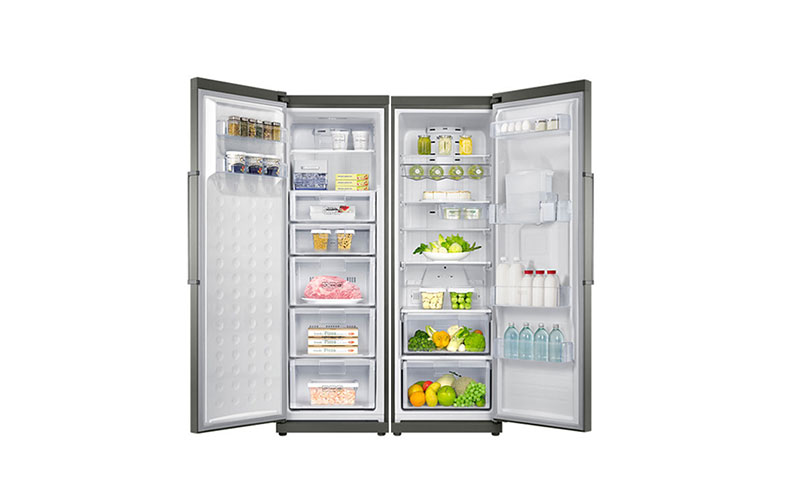 صرف نظر از مساحت خانه و ابعاد آشپزخانه با داشتن یخچال دوقلوی RR30/RZ30 سامسونگ می‌توانید مطمئن باشید که یکی از منعطف‌ترین و سازگارترین دستگاه‌های لوازم خانگی را به منزل‌تان آورده‌اید. با توجه به جدا بودن دو دستگاه این مزیت را دارید تا در صورت کوچک بودن آشپزخانه، فریزر را در جای دیگری از خانه قرار دهید. اگر مشکلی هم از این بابت ندارید و تمایل دارید تا هر دو دستگاه یخچال‌ وفریزر را در آشپزخانه داشته باشید، می‌توانید درب‌های دستگاه‌ را براساس چینش وسایل آشپزخانه و به شکل دلخواه خود تغییر دهید. مجهز به قابلیت درب معکوس شونده است که به شما امکان می‌دهد تا درب‌ها را به گونه‌ای تنظیم کنید که از سمت راست یا چپ باز شوند.