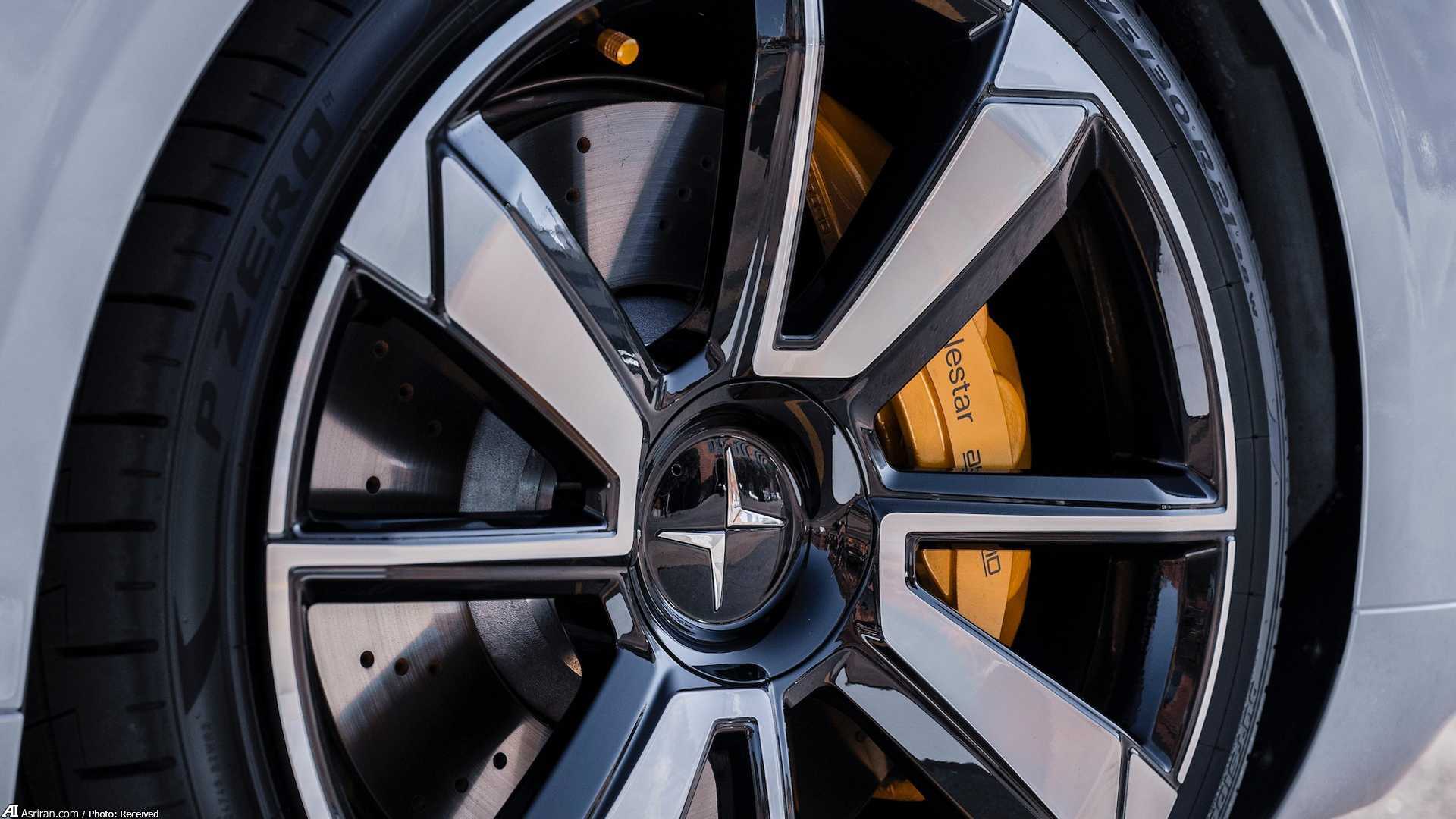 در میان چرخ ها نیز رنگ زرد کالیپر سیستم ترمز خودنمایی می کند که باید گفت ترمزهای دیسکی جلو با قطر 400 میلیمتر بطور اختصاصی توسط برند حرفه ای Akebono برای پولستار تولید شده اند. دیسک های ترمز عقب نیز 390 میلیمتر قطر دارند.