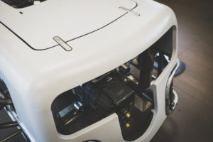 اف دی فقط برای یک سرنشین یعنی راننده ظرفیت دارد. تمام قسمت های داخلی کابین از چوب بسیار باکیفیت کار شده حتی صندلی که طراحی آن به سبک سال های ابتدایی قرن بیستم انجام شده است. اما کنسول اصلی، بخش های کرومی و فرمان بسیار آینده نگر هستند که ترکیب جالبی را ایجاد کرده اند.
