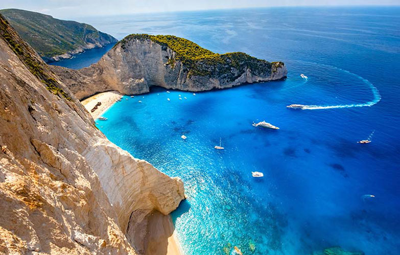 یونان از ۶۰۰۰ جزیرهی کوچک و بزرگ تشکیل شده و سانتورینی به لطف بناهای سفیدرنگ و ساحل شنی قرمزرنگ خود یکی از مشهورترین جزایر این کشور است. صخرههای قرمزرنگ سانتورینی که نشان از وجود عنصر آهن دارند، تضادی چشمنواز را در برابر آبهای فیروزهایرنگ مدیترانهای ایجاد میکنند و یکی از زیباترین شگفتیهای طبیعی این کشور را به معرض تماشا میگذارند.