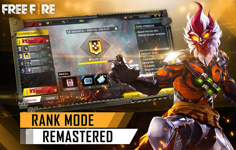 برخی از ویژگی های بازی اکشن و بقا Garena Free Fire اندروید :