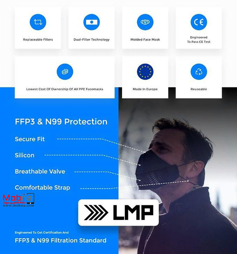 از میان مدل های بسیار متنوع ماسک اگر بدنبال یکی از بهترین انواع آن هستید قطعا ال ام پی یک گزینه برتر محسوب می شود. این محصول از استانداردهای FFP3 و N99 پشتیبانی می کند و طراحی خلاقانه ای را ارائه می دهد.