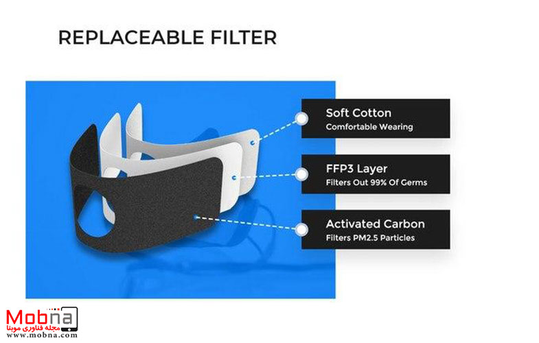 تنفس با این ماسک آسان است و در 4 رنگ مختلف ارائه می شود در قسمت فیلتر آن از رابر سیلکونی چندبار مصرف به عنوان قالب فیلتر های اصلی استفاده شده است که براحتی می توان آنرا شستشو داد. فیلتر قابل تعویض نیز طراحی 3 لایه از کتان نرم، FFP3 و لایه فیلتر PM2.5 دارد و ذرات معلق 2.5 میکرون را نیز فیلتر می کند.