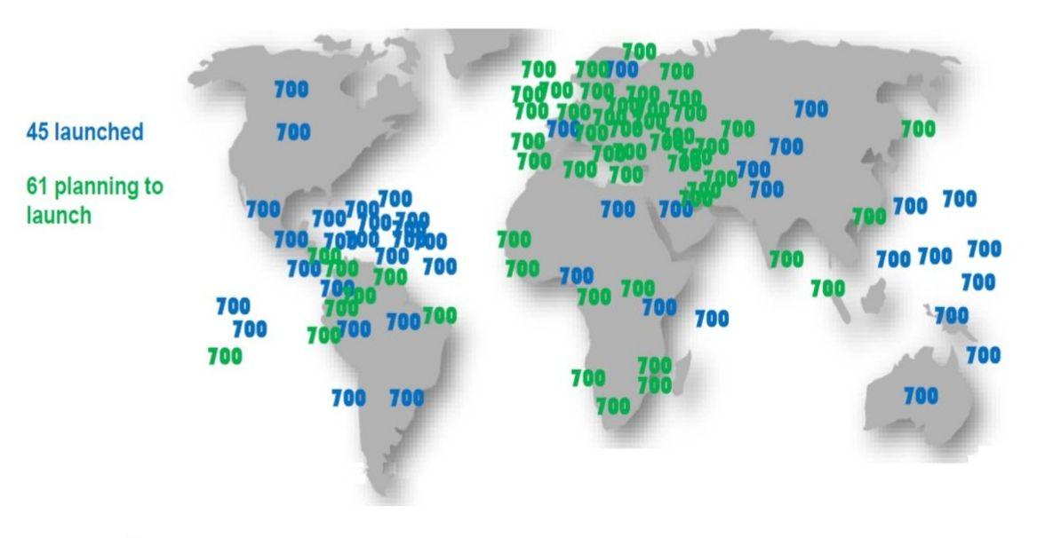 کشورهایی که باند 700 مگاهرتز را برای 4G/5G پیادهسازی کرده یا برای آن برنامه دارند