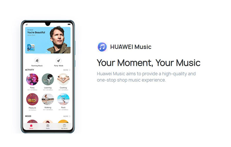 با استفاده از این سرویس، کاربران میتوانند به موسیقیهای با کیفیت بالا گوش بدهند و مجموعه متنوعی مانند میلیونها کتابخانه موسیقی، لیست آهنگهای محبوب و کانالهای ارائه کتابهای صوتی در اختیار داشته باشند. در حال حاضر Huawei Music در بیش از ۷۰ کشور و ناحیه بیش از ۱۵۰ میلیون کاربر فعال ماهیانه دارد.