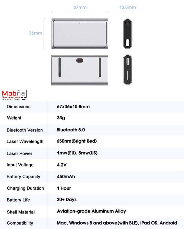 مجله آنلاین موبنا؛ محمدمهدوی – چیرپاد نام یک ماوس بی سیم چندکاره است که در ابعاد 10.8 در 36 در 67 میلیمتر با سنگینی 33 گرم تولید شده است. همانطور که در تصاویر مشاهده می کنید کابینت ماوس از آلومینیوم باکیفیت تولید شده و مقاومت بالایی در برابر آسیب های احتمالی دارد.