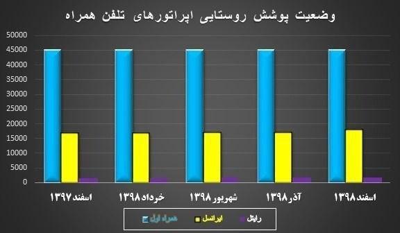گزارشهای سازمان تنظیم مقررات و ارتباطات رادیویی در راستای توسعه ارتباطات موبایل روستایی تا پایان سال گذشته نیز به شرح نمودار ترسیمی در تصویر است.