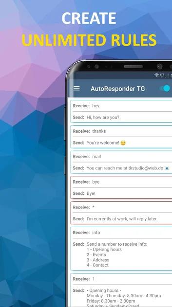 برخی از امکانات و قابلیت های برنامه AutoResponder for Telegram – Auto Reply Bot اندروید: