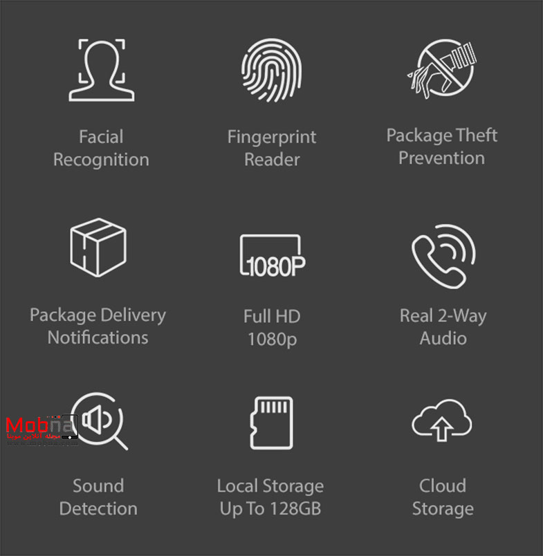 در قسمت پایین افزونه دوربین یک سنسور اثر انگشت نیز قرار دارد که یک راهکار دیگر برای ورود ایمن را مقابل کاربر قرار می دهد. این محصول از کارت حافظه تا 128 گیگابایت و فضای ذخیره سازی ابری نیز پشتیبانی می کند.