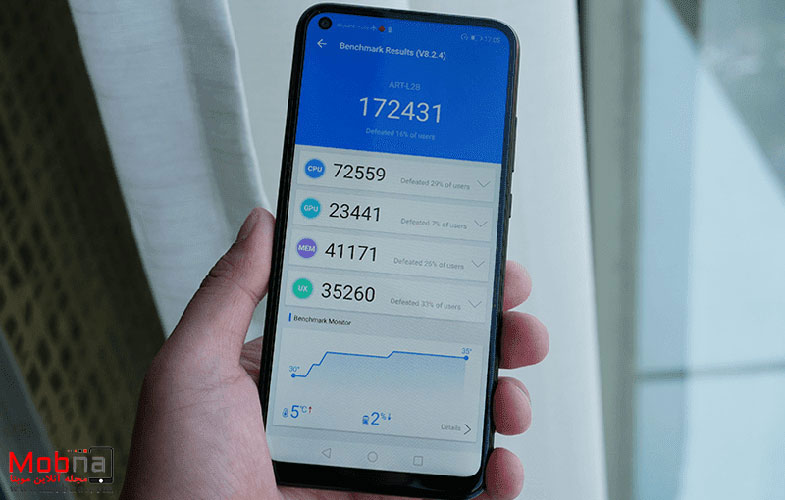Huawei Y7p در نرمافزار AnTuTu Benchmark امتیاز 140.758 و در Geekbench امتیاز 260 را در تست تکهستهای و 1.120 را در تست چندهستهای کسب کرده است.