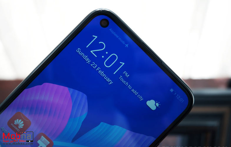 اولین ویژگی ظاهری که در نگاه اول توجه کاربر را به خود جلب میکند، ناچ پانچی کوچک Huawei Y7p است که گوشه سمت چپ بالای نمایشگر، دوربین سلفی 8 مگاپیکسلی را در خود جای داده است.