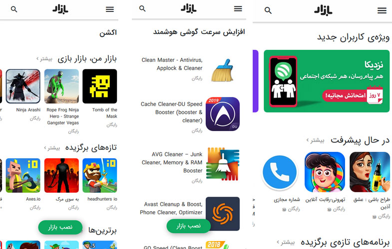 با استفاده از کافه بازار میتوانید اپلیکیشنهای پرکاربرد ایرانی را برای گوشی خود دانلود کنید. به غیر از اپلیکیشنهای پرکاربرد ایرانی، کافه بازار مجموعه کاملی از برنامههای اندرویدی خارجی را نیز برای دانلود در اختیار کاربران قرار داده است.
