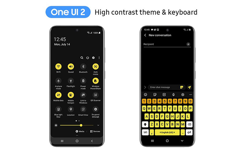 «دسترسی» به این معنی است که قابلیت‌های هر دستگاهی‌ باید برای همه کاربران در دسترس باشد. طراحان One UI 2 در این زمینه تلاش کردند تا برای همه کاربران احتمالی تجربه‌ای یکسان، بدون توجه به سن یا محدودیت احتمالی آنها ایجاد کنند. در همین راستا از قابلیت‌هایی مثل تم‌هایی با کنتراست بسیار بالا استفاده شد که به افراد دارای مشکل در بینایی کمک می‌کند محتوای صفحات را بهتر ببینند. سامسونگ همچنین با کاربران دچار معلولیت هم مشورت کرده و با استفاده از تجربیات و نظرات آنها تلاش کرد تا در هر جای ممکن، عملکرد UI خود را ارتقا ببخشد.