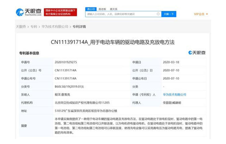در یک «پتنت» دیگر، هوآوی مدل جدیدی از مدارهای الکترونیک برای خودروهای الکترونیکی معرفی کرده است. باتری خودروهای الکترونیکی در حال حرکت نیز شارژ میشوند. این اتفاق میتواند از طریق انرژی الکتریکی حاصل از ترمزها باشد یا در خودروهای هیبریدی توسط موتور بنزینی تولید شود.